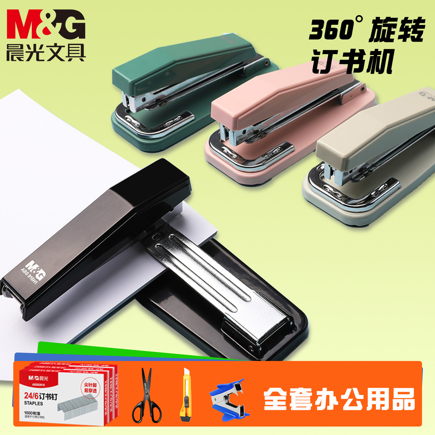 晨光可旋转订书机办公用大号省力重型加厚订书神器厚书初中学生家用可订中缝多功能外卖打包专用高颜值钉书机