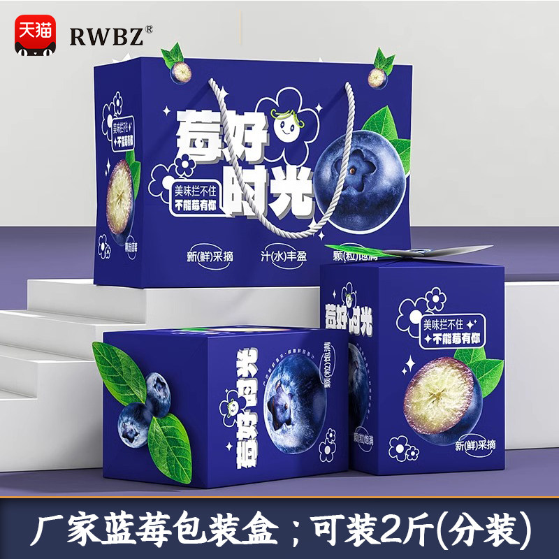 蓝莓包装盒高档蓝莓手提礼盒1斤2斤装蓝莓礼品盒水果包装纸箱批发