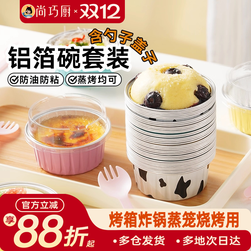 展艺空气炸锅专用锡纸碗烤箱烘焙耐高温蛋挞布丁铝箔杯小蛋糕模具