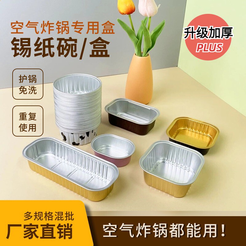 空气炸锅锡纸碗铝箔可重复家用烤箱蛋糕布丁烘焙模具小锡纸盒杯盘