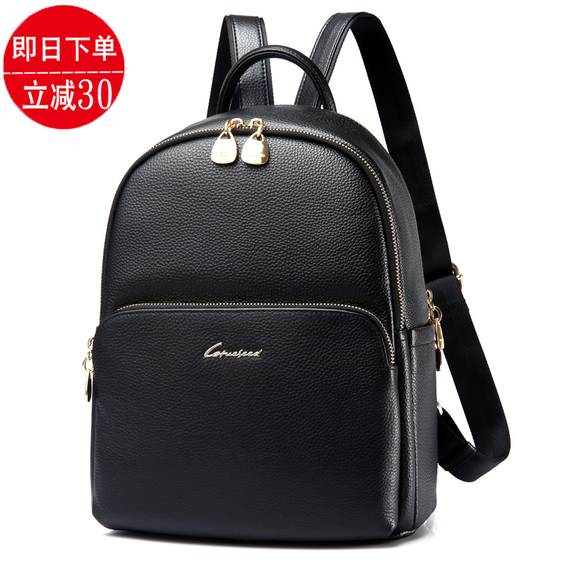 2025新款百搭软牛皮双肩包女真皮大容量劳斯帅特时尚头层牛皮背包
