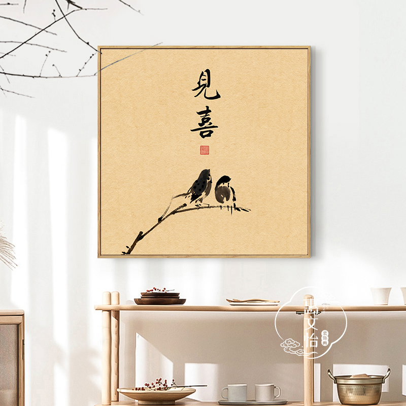 抬头见喜雀新中式极简风水墨挂画茶室餐厅禅意画寓意好装饰画方形