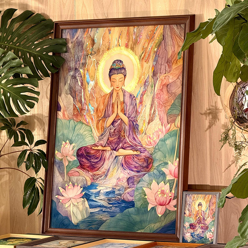 《澄光渡心》中式禅意画画观音客厅装饰画画高端大气寓意玄关书房