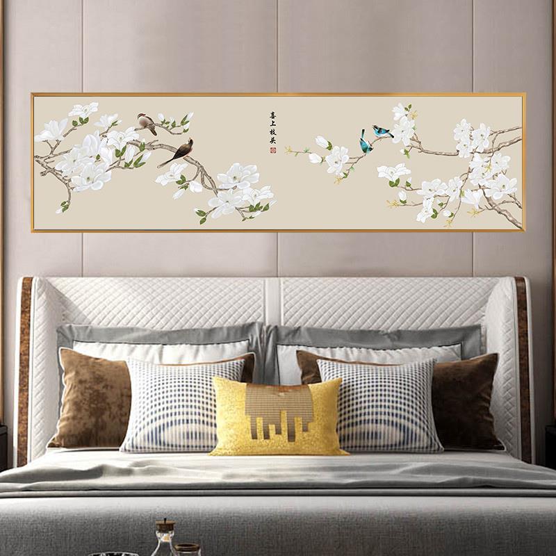 新中式挂画工笔花鸟国画横幅长条壁画酒店卧室装饰画中国风禅意画