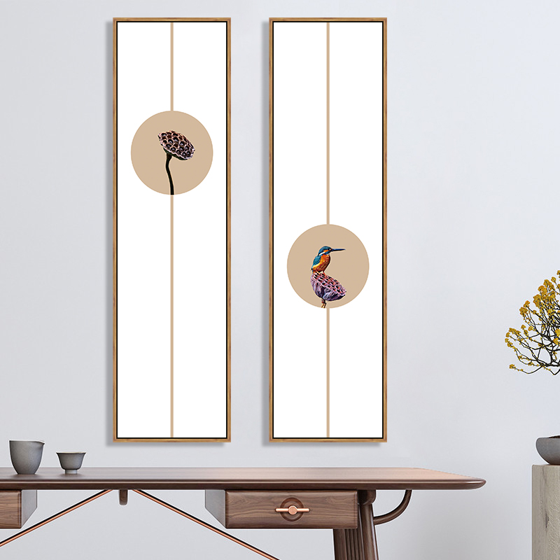 新中式极简禅意画荷花挂画莲蓬装饰画客厅四条屏办公室茶室壁画竖