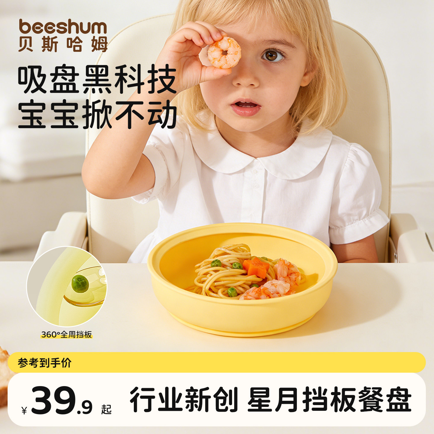 beeshum硅胶吸盘餐盘婴儿辅食碗一体式防摔宝宝专用吃饭儿童餐具