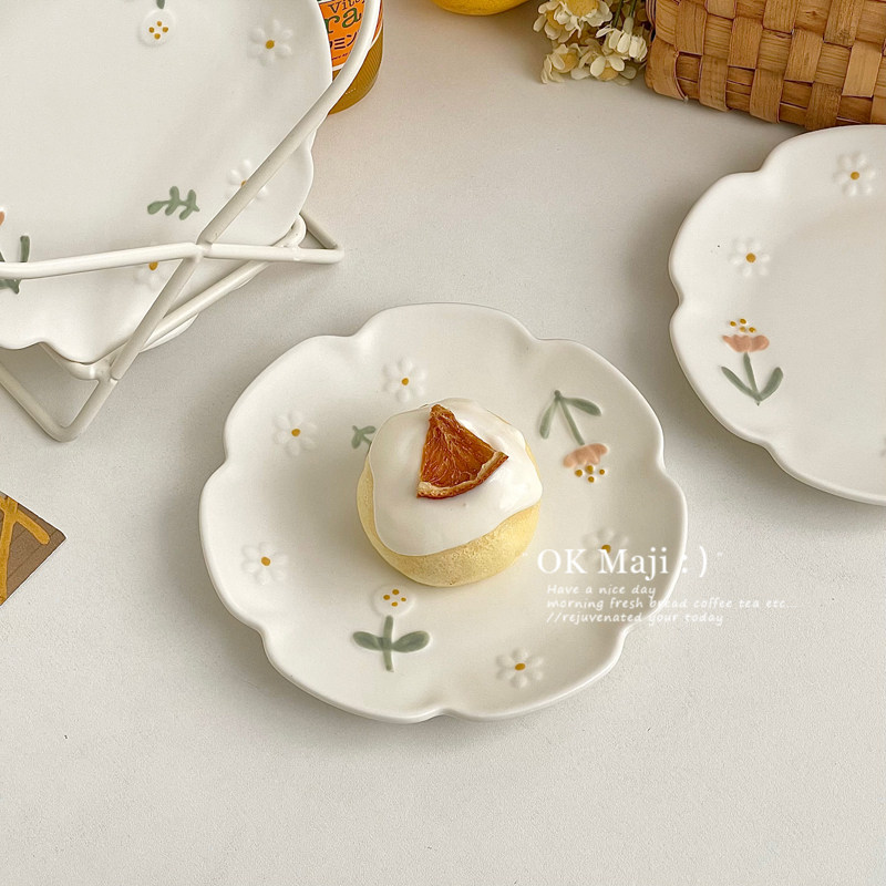 小雏菊餐具ins风小盘子甜品盘陶瓷餐盘精致小碟子可爱水果蛋糕碟