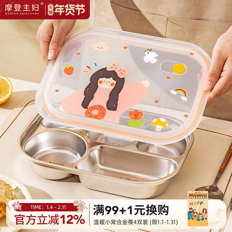摩登主妇儿童分格餐盘食品级316L不锈钢婴儿宝宝餐具幼儿园分餐盘