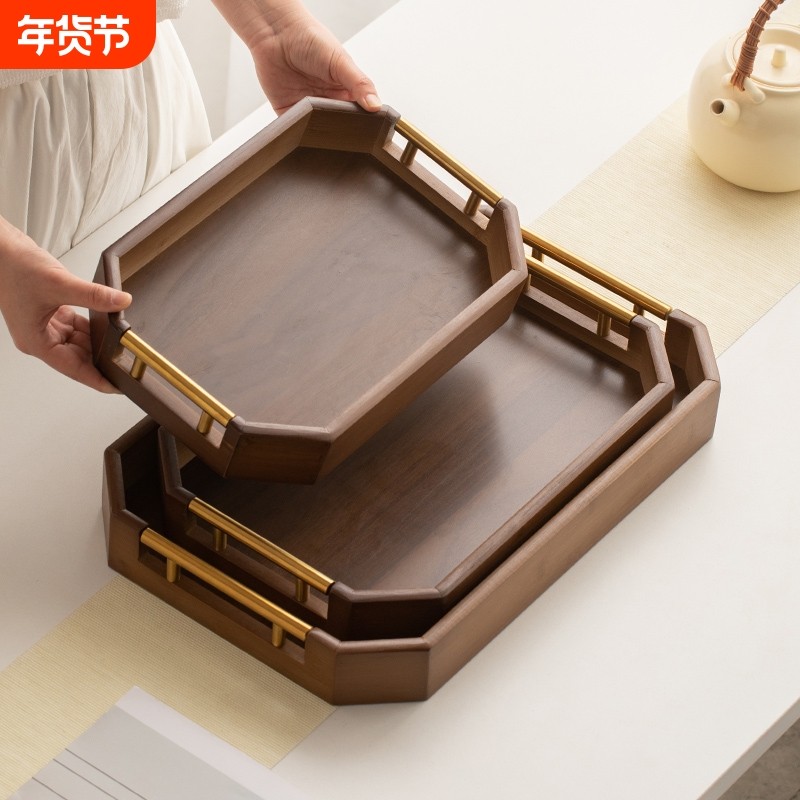 中式复古竹木胡桃色收纳托盘轻奢竹制干泡茶客厅果盘商用高档餐盘