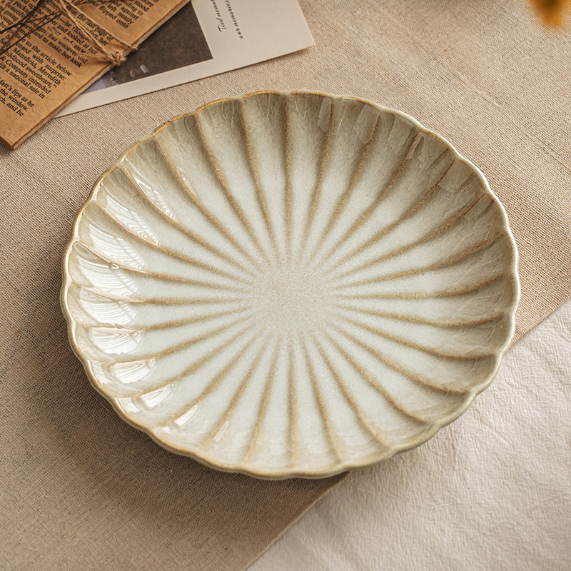 悠瓷 复古浮雕陶瓷盘子家用菜盘早餐盘高颜值西餐盘意面盘甜品盘