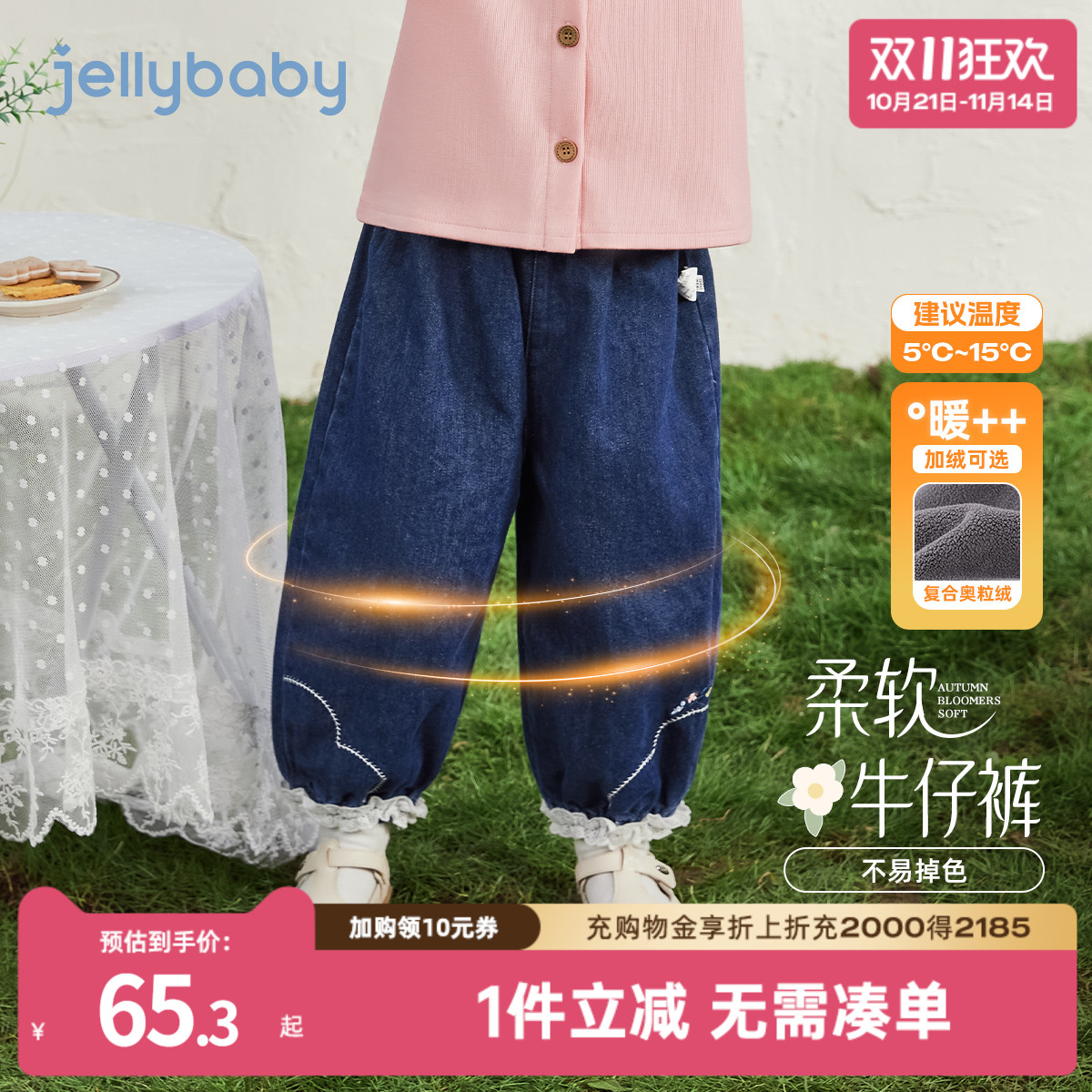 [7A抗菌]女童加绒牛仔裤秋冬宝宝宽松灯笼裤小童休闲秋季儿童裤子