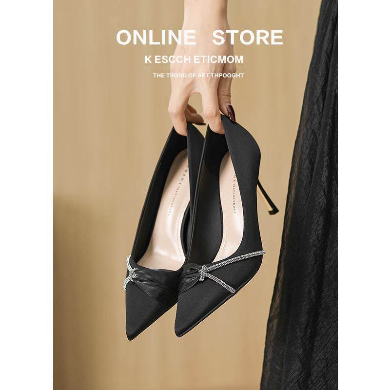 沙驰女鞋细跟高跟职业女单鞋2025秋季新款尖头浅口闪钻新娘鞋婚鞋