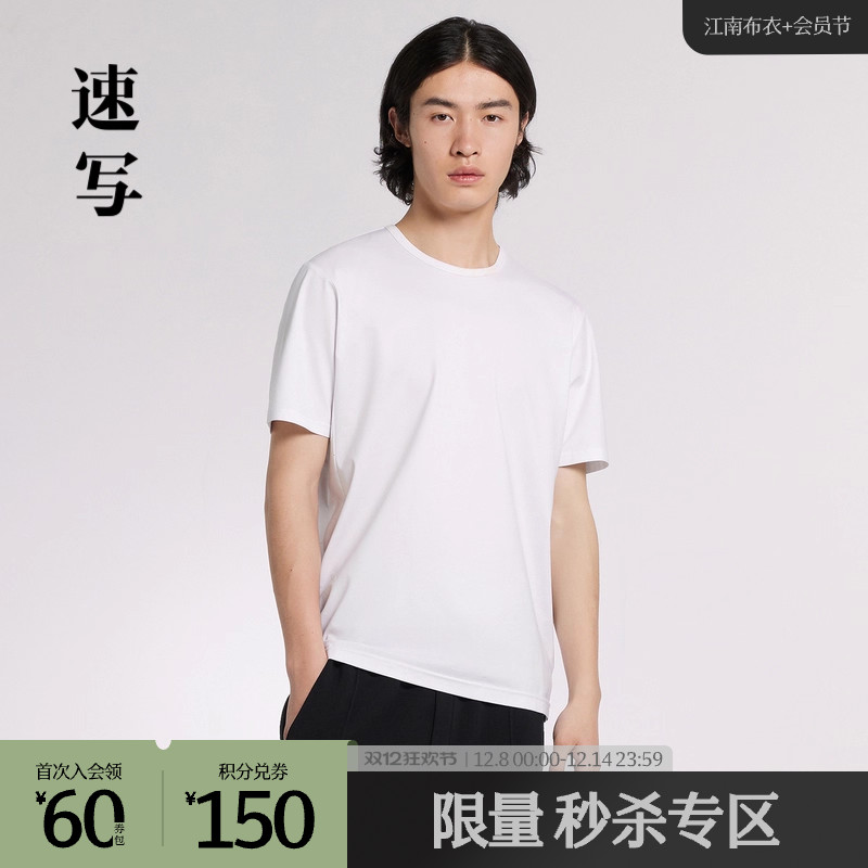 速写outlets奥莱男装春秋T恤修身圆领短袖套头同色系拼接休闲潮流