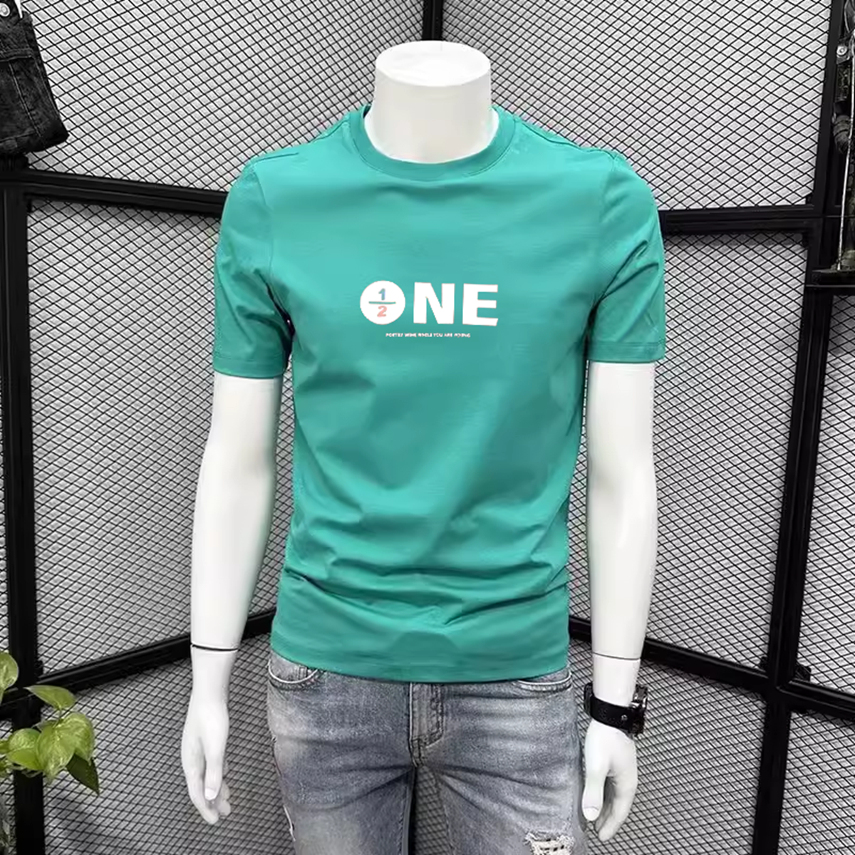 2025夏季潮流个性圆领印花短袖t恤男韩版修身百搭休闲半袖打底衫