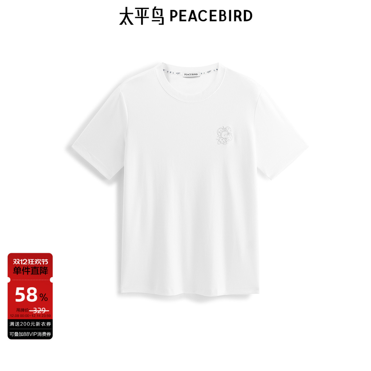 元本 新疆棉夏男短袖T恤男士修身半袖打底深白色舒适潮流休闲百搭