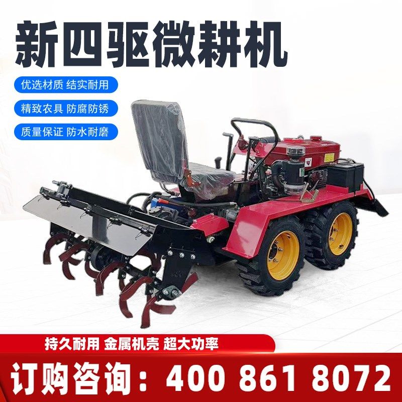 新款四驱微耕机农用四轮旋耕机履带式耕地机田园开沟机松土除草机