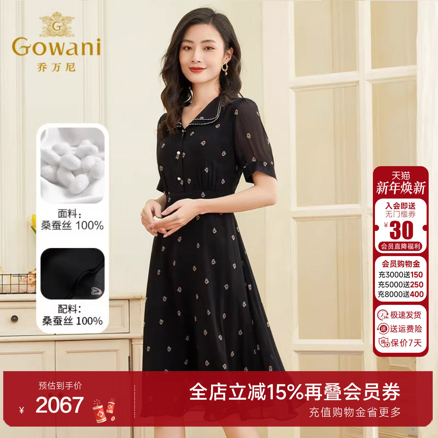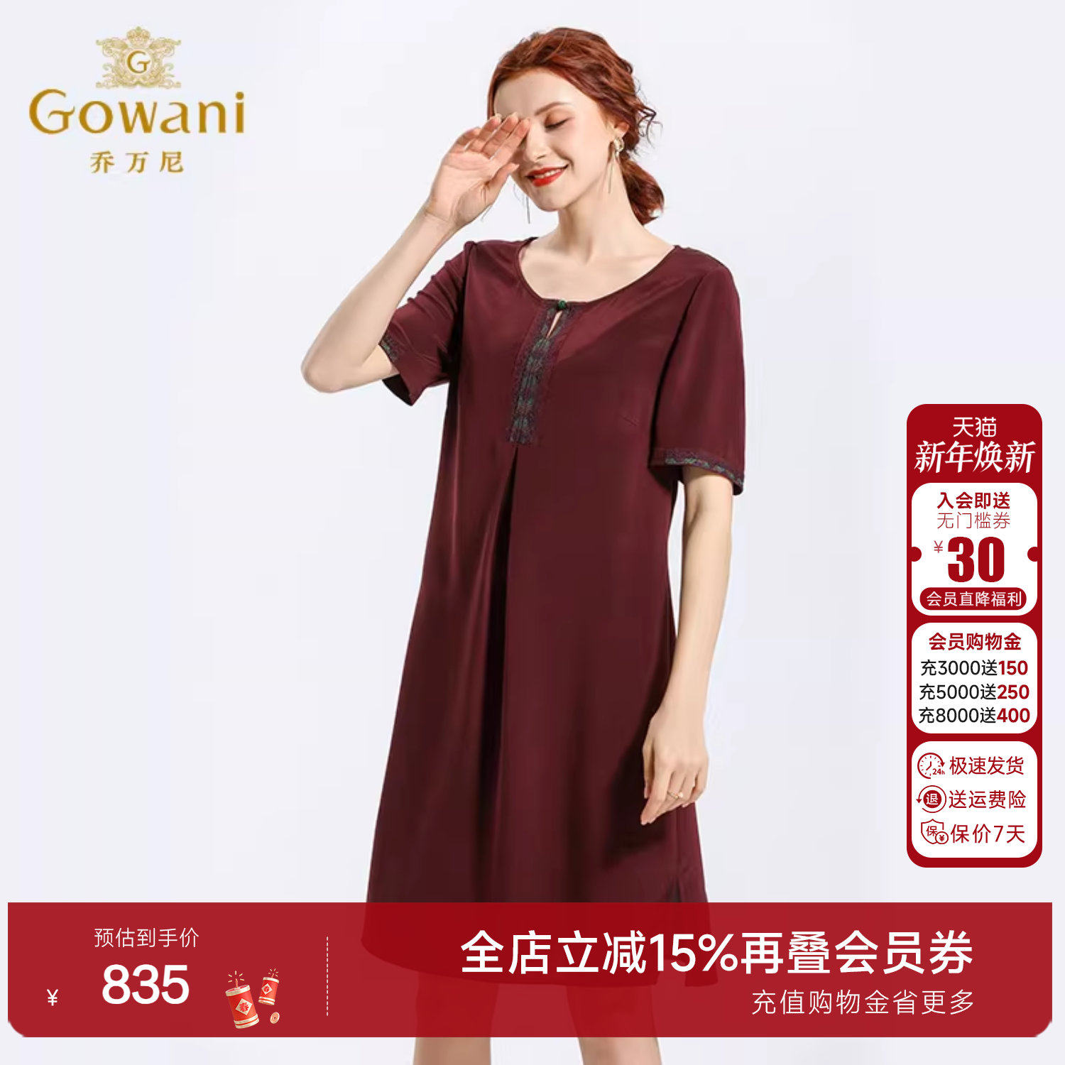 乔万尼商场新款夏真丝宽松气质中年妈妈重磅桑蚕丝连衣裙女中长款