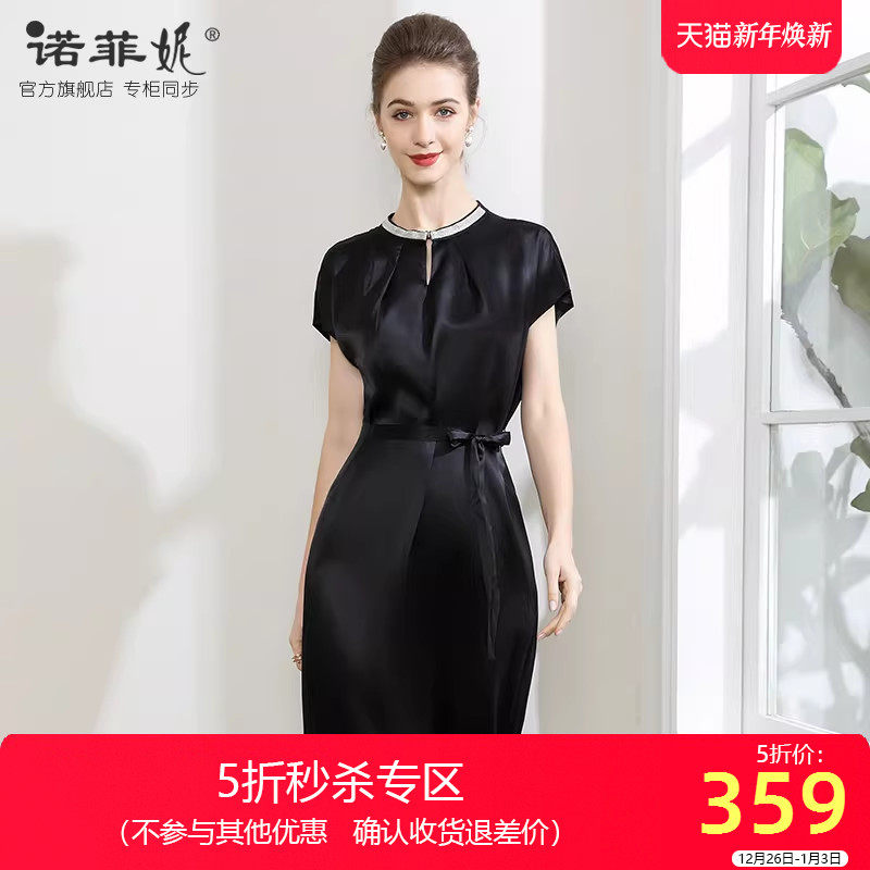 中年女装2025夏装新款黑色重磅真丝连衣裙桑蚕丝丝绸顺滑中长裙女