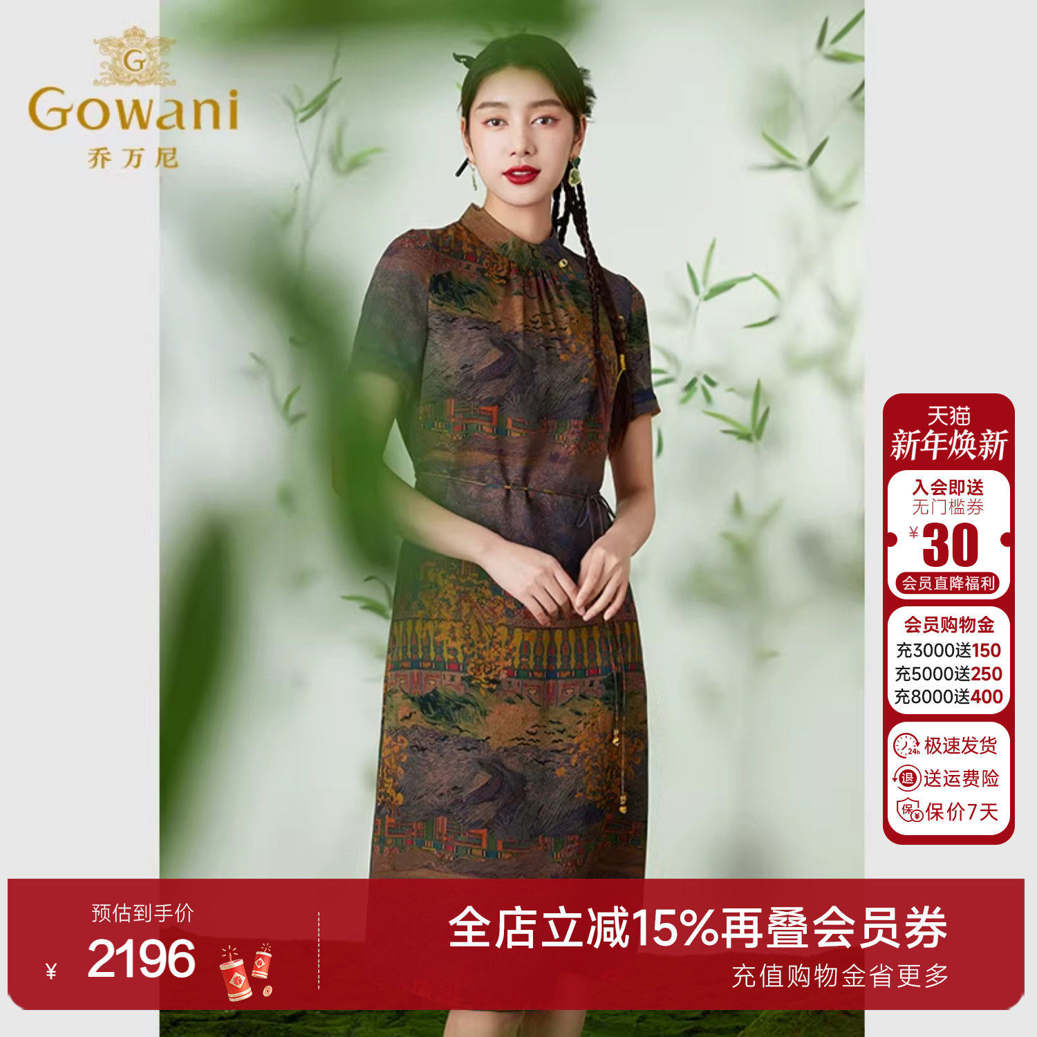 乔万尼真丝连衣裙好看流行新款商场同款重磅高蚕丝中长款EF2E319