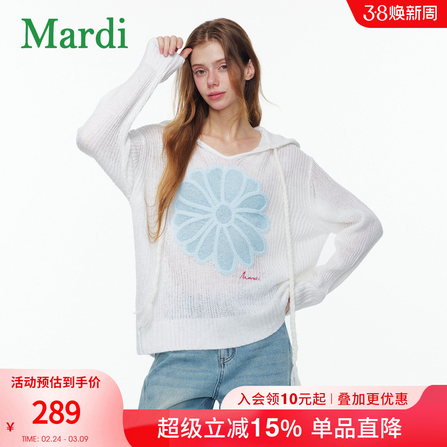 MARDI连帽针织衫26新款雏菊刺绣罩衫女长袖宽松休闲上衣花朵毛衣