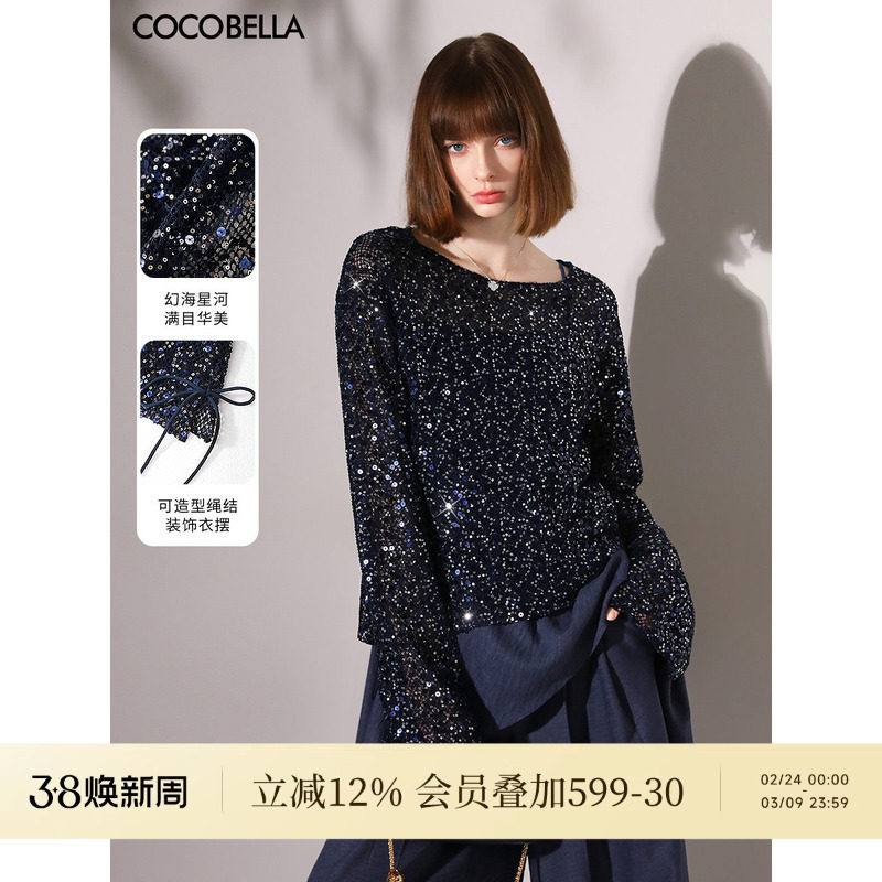 COCOBELLA璀璨星光亮片微透视针织衫女秋轻奢风套头罩衫MZ7038