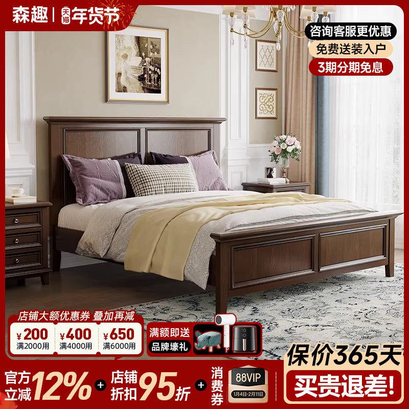 森趣美式实木床白蜡木全实木1.8米单人双人床卧室主卧床工厂直销