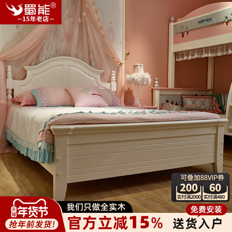 白色美式田园实木床1.8m简约单双人床次卧白色公主床奶油风儿童床