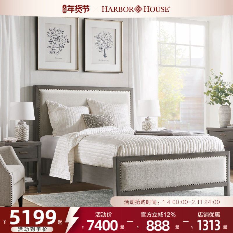 HarborHouse现代美式实木床家具卧室1米5软包床1米8双人主卧大床