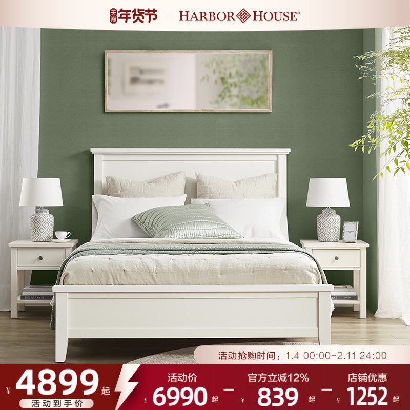 HarborHouse美式实木床现代家具复古小户型主卧奶油风大床双人床