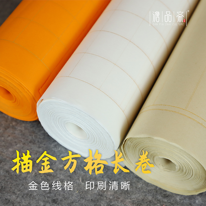 加厚描金方格小楷长卷宣纸半生熟带格子千字文楷书篆隶初学者临帖练习作品创作专用带格描金书画手卷纸100m