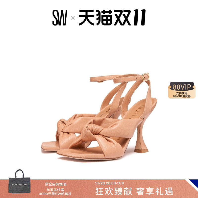 SW PLAYA ANKLE-STRAP 100 KNOT 夏季新款方头蝴蝶系结高跟凉鞋