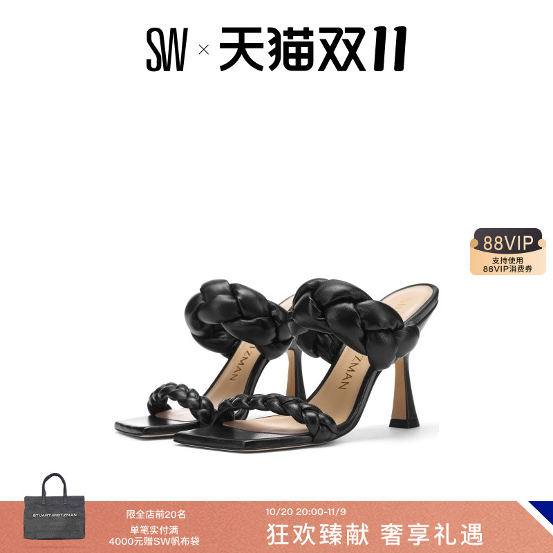 Stuart Weitzman/SW PLAYA 100 SANDAL 夏季编织方头细高跟凉鞋女