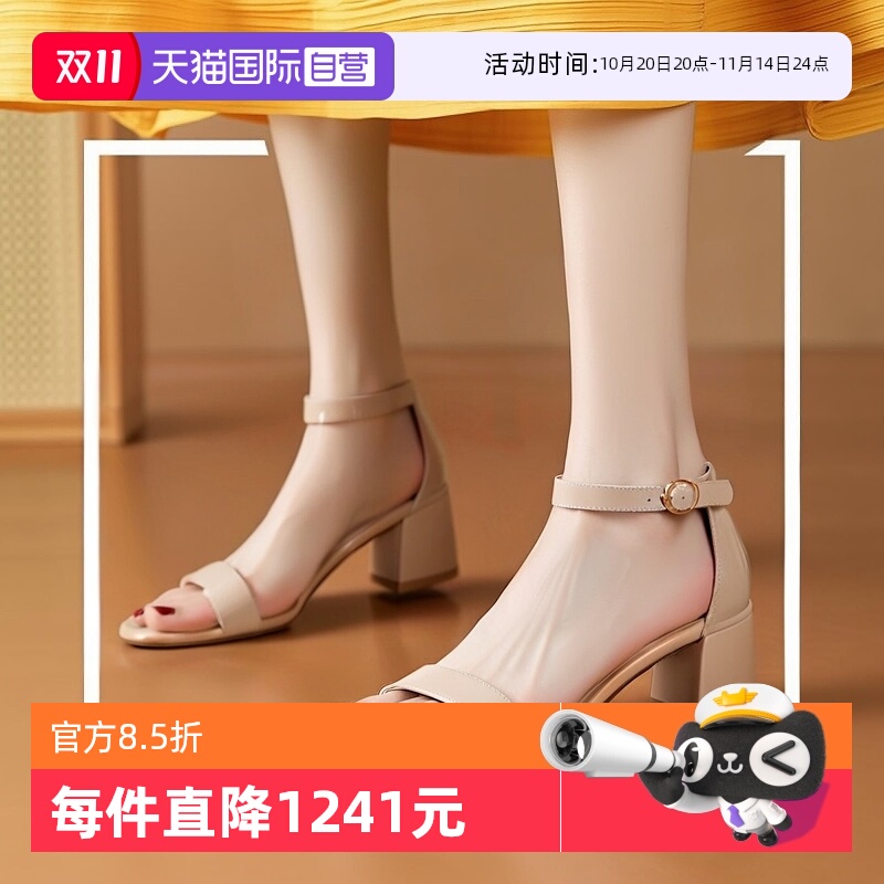 SW NEARLYNUDE 春夏经典一字扣带粗跟凉鞋女仙女风圆头高跟鞋