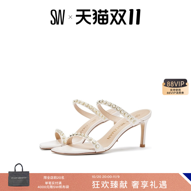 Stuart Weitzman/SW ALEENA 75 PEARLS 珍珠装饰细高跟一字带凉鞋