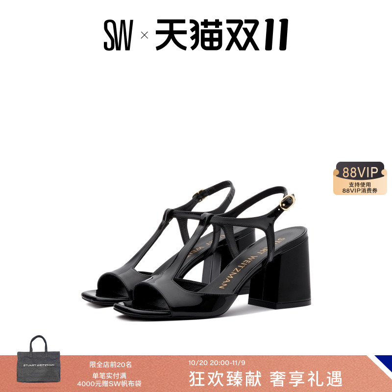 SW FLAREBLOCK T-STRAP SANDAL 方头喇叭形粗高跟T字带凉鞋女