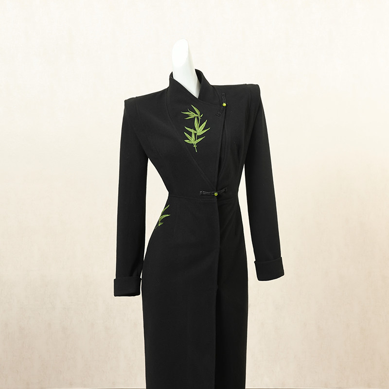 浒城古娘新款重工刺绣气质高端长袖新中式国风战袍连衣裙女款春秋