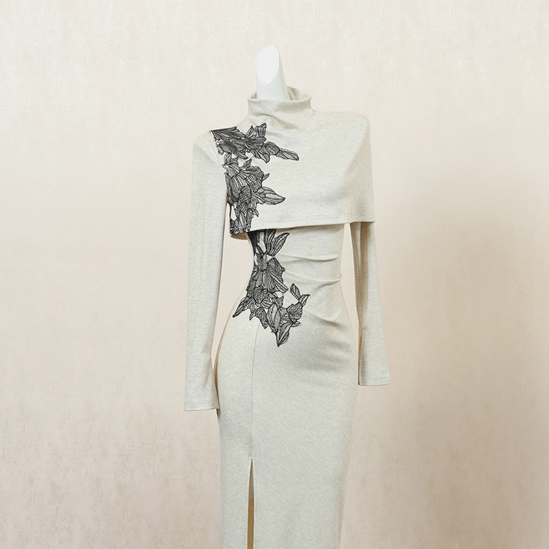 法式重工刺绣连衣裙女秋季长裙小众设计感御姐风高端宴会礼服裙子