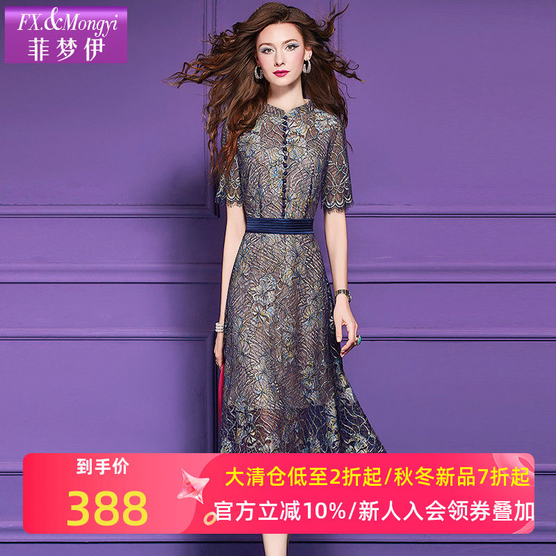 高端时尚复古重工提花蕾丝刺绣改良旗袍长裙女气质收腰显瘦连衣裙