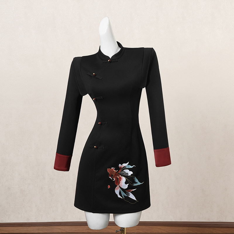 秋季新款高端时尚轻奢高级感重工刺绣改良旗袍裙女气质优雅连衣裙