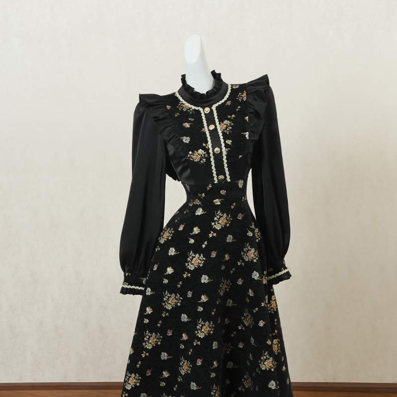 香妮芬高端重工刺绣中年妈妈连衣裙女2025新款秋季碎花收腰显瘦裙