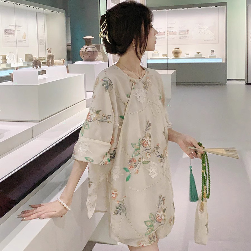 菲梦伊重工绣花衬衫连衣裙女短袖夏季复古国风高端收腰显瘦中长裙