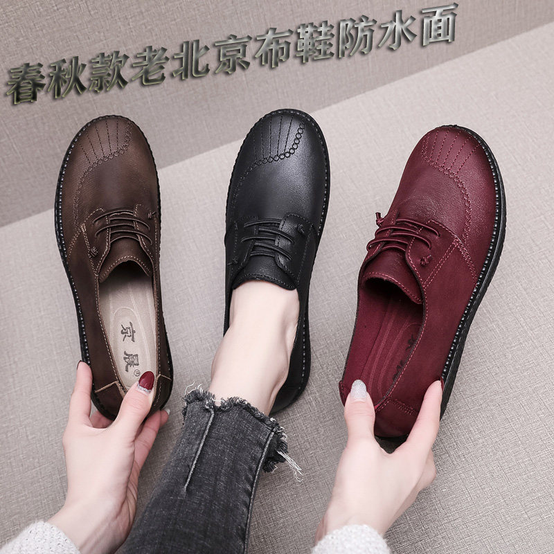 老北京布鞋春秋女鞋休闲防水中老年妈妈鞋平底软底防滑舒适奶奶鞋