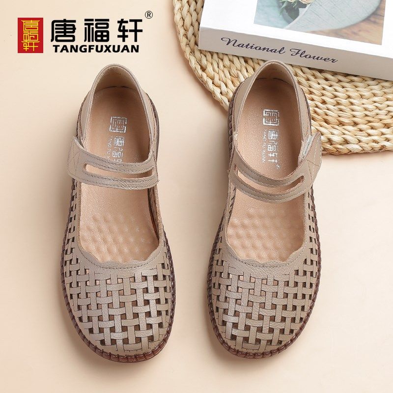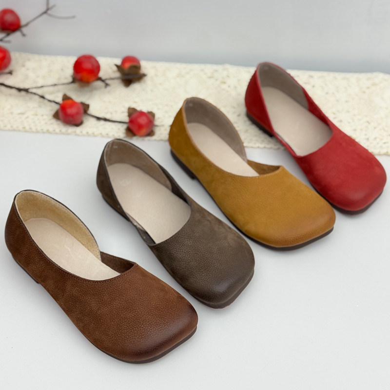 手工真皮复古妈妈鞋牛皮浅口软皮软底奶奶鞋玛丽珍鞋中老年平底鞋