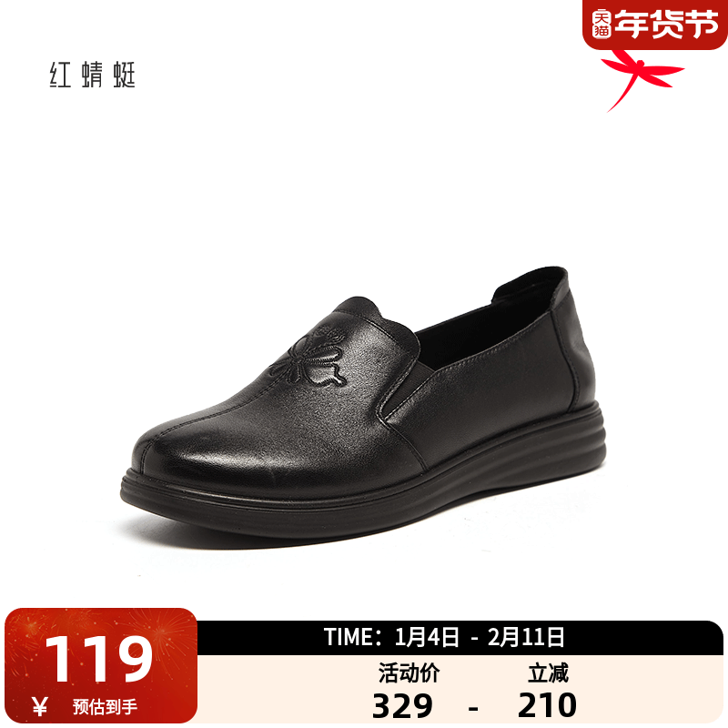 红蜻蜓女鞋真皮复古中老年软底奶奶皮鞋平底懒人单鞋舒适妈妈鞋子