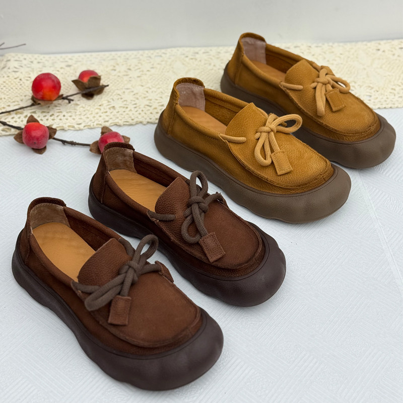 真皮复古乐福鞋女2025春秋新款女鞋平底休闲鞋不累脚中老年平底鞋
