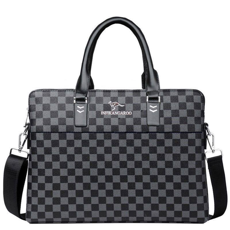 正品袋鼠厂家直供男士包软皮手提商务单肩包男格子挎包手拿公文包