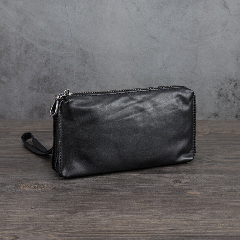 男士真皮手包软皮手拿包复古牛皮长款钱包休闲手机包简约手抓包女