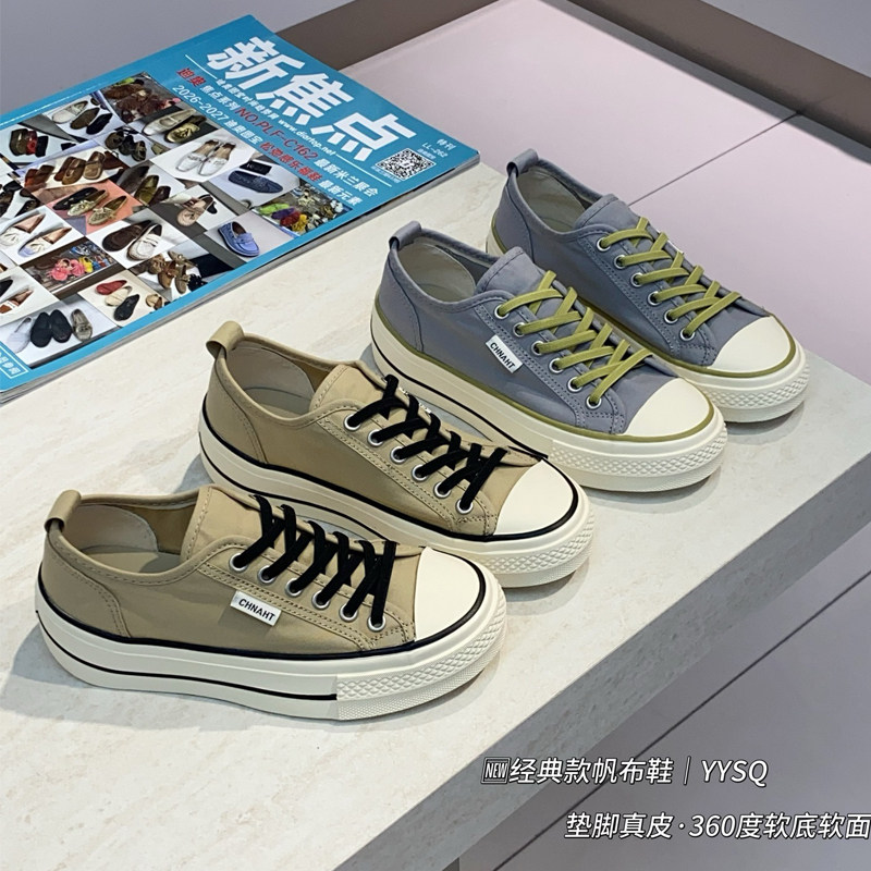 2026年秋季新款女鞋厚底帆布鞋女款轻便百搭透气休闲运动板鞋单鞋