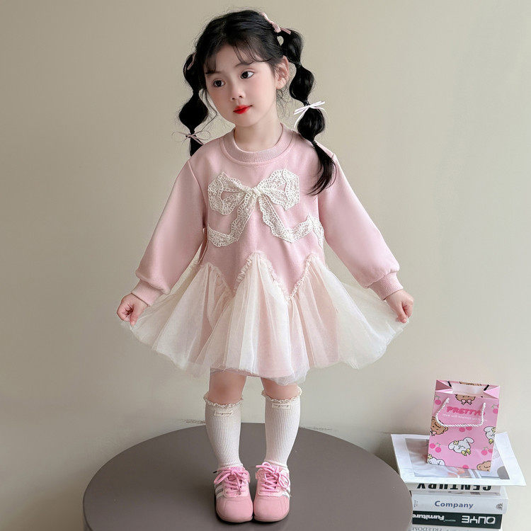班喜迪女童连衣裙春装2026新款儿童裙子宝宝公主裙春秋网纱卫衣裙