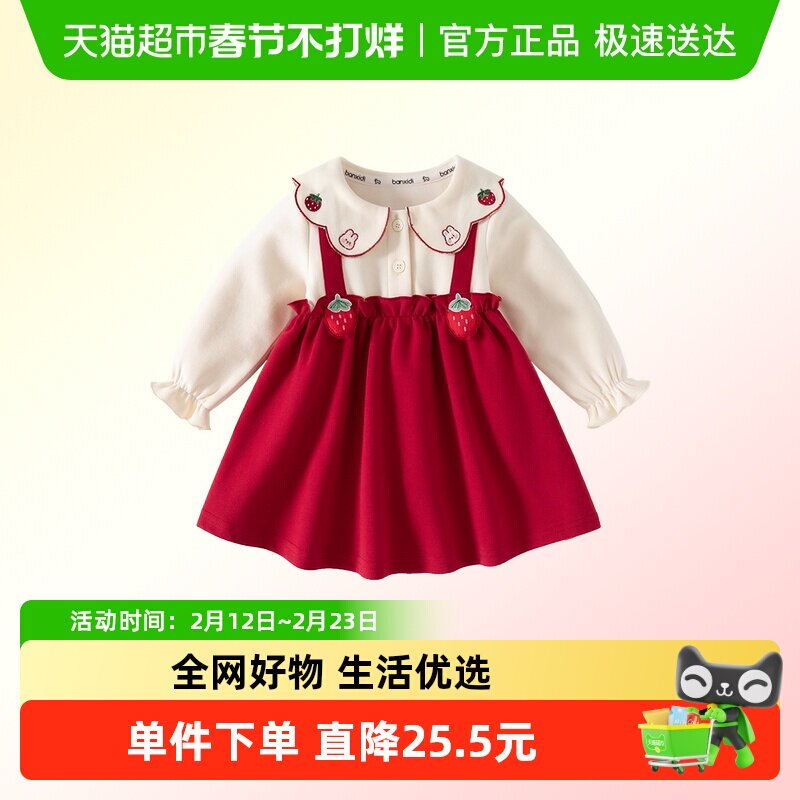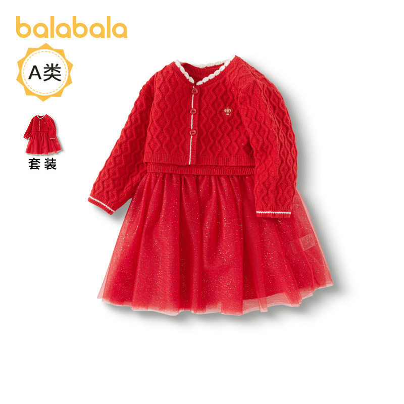 巴拉巴拉婴儿连衣裙套装宝宝春装裙子针织衫周岁礼服套装裙拜年服